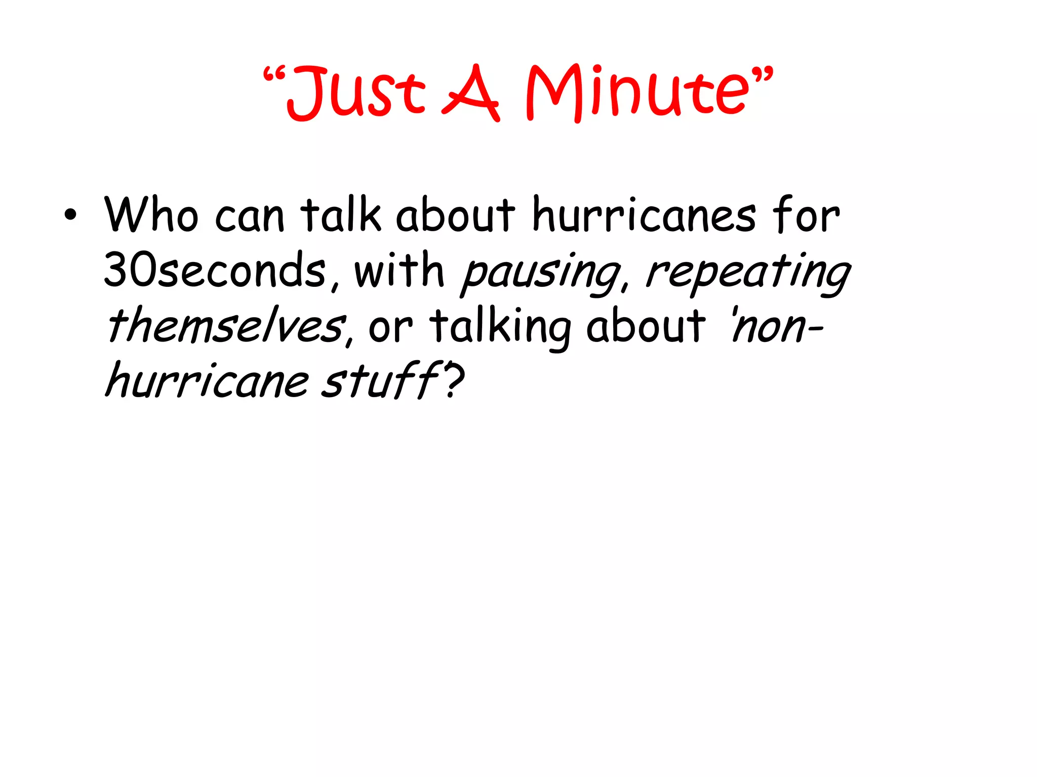 This lesson discusses the causes and effects of tropical storms like hurricanes. It will teach students to recognize and categorize different hurricane effects. Students will debate whether primary effects from direct winds and rain, or secondary effects further removed are worse. The lesson also explores how developed and developing countries are differently affected through case studies. As an assessment, students will research a past hurricane for homework.