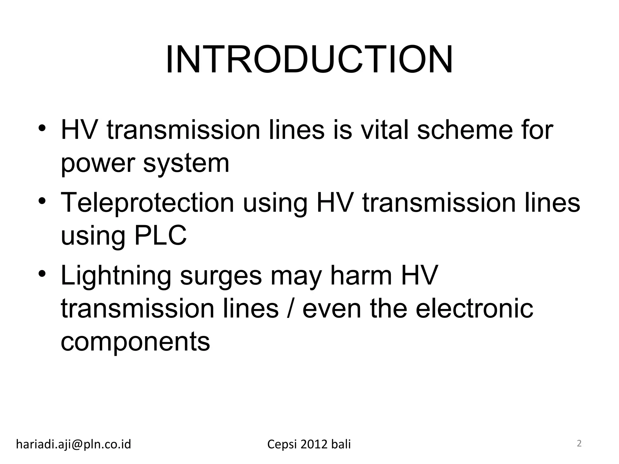The document discusses troubleshooting of a power line carrier (PLC) module for a transmission line in Singkawang-Senggiring, Indonesia. It describes malfunctions in the power supply and high frequency power amplifier modules. Issues included defective components like transistors and logic gates. Replacement of faulty components and addition of fuses addressed the problems. Simulation software helped identify operating currents to guide troubleshooting. Overall, a trial and error approach successfully resolved the issues.