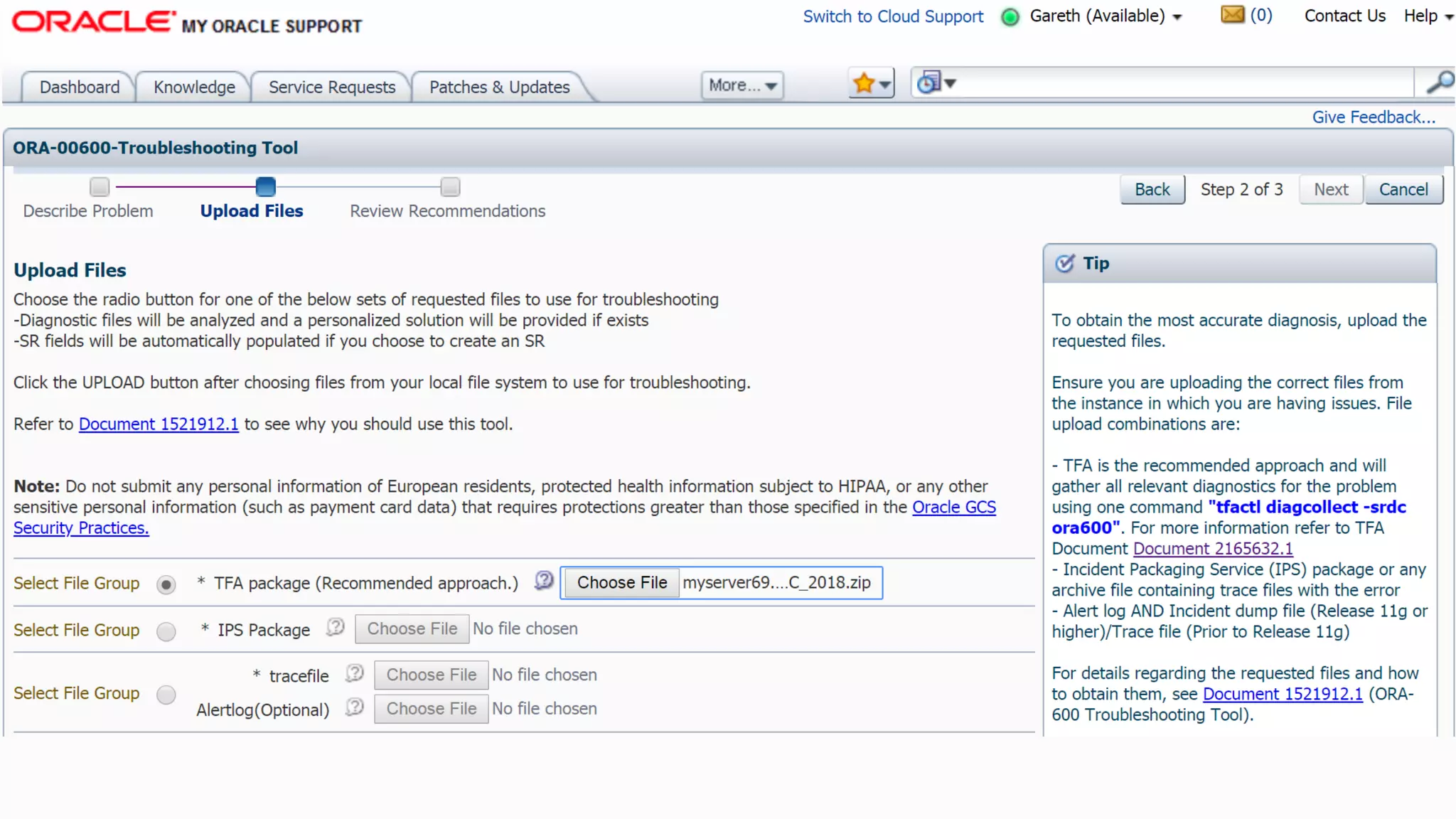 Usage of TFA for diagnostic collections and introduction to AWR scripts for performance statistics and SQL load analysis.