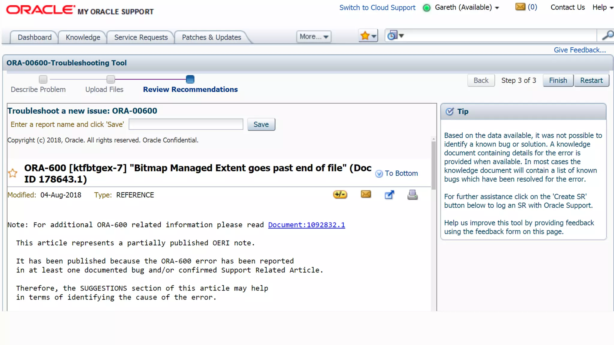 Methods to connect to a hung Oracle database using preliminary connections and importance of guided resolution with Oracle Support.Resources for troubleshooting Oracle database issues, including diagnostics for ORA errors, startup/shutdown issues, and undo management.