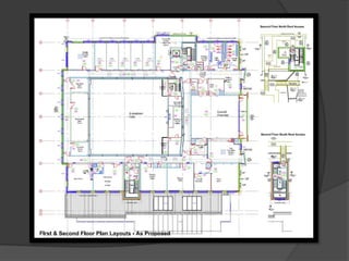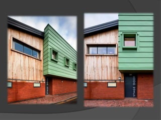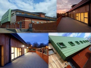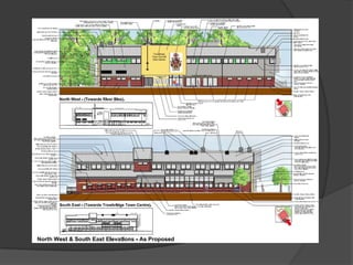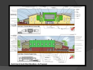 The Trowbridge Civic Centre redevelopment project was completed on time and on budget. It provided 4,500 square meters of new flexible space for offices, performance areas, meeting rooms, and other community spaces. Materials for the building included local chestnut, stone, steel, and brick. The redevelopment replaced an outdated 1970s building and improved energy efficiency through high insulation, low energy lighting, underfloor heating, and natural ventilation.