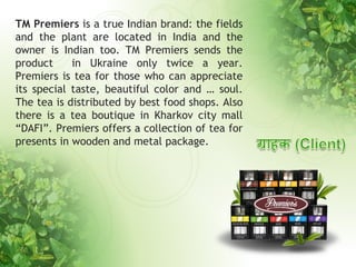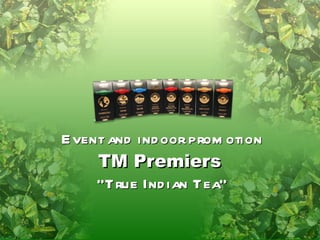 Event and indoor promotion were held to introduce the Indian tea brand "True Indian Tea" to audiences in Ukraine. The events took place at a fashion party and in a city mall, featuring Indian music, dancing, clothing and a tea tasting. The promotions attracted over 450 people and increased sales at a tea boutique by 100% on the day, with ongoing sales rising 30% after the events. The brand was successfully introduced to fashion and food interested audiences, and new retailers were attracted.