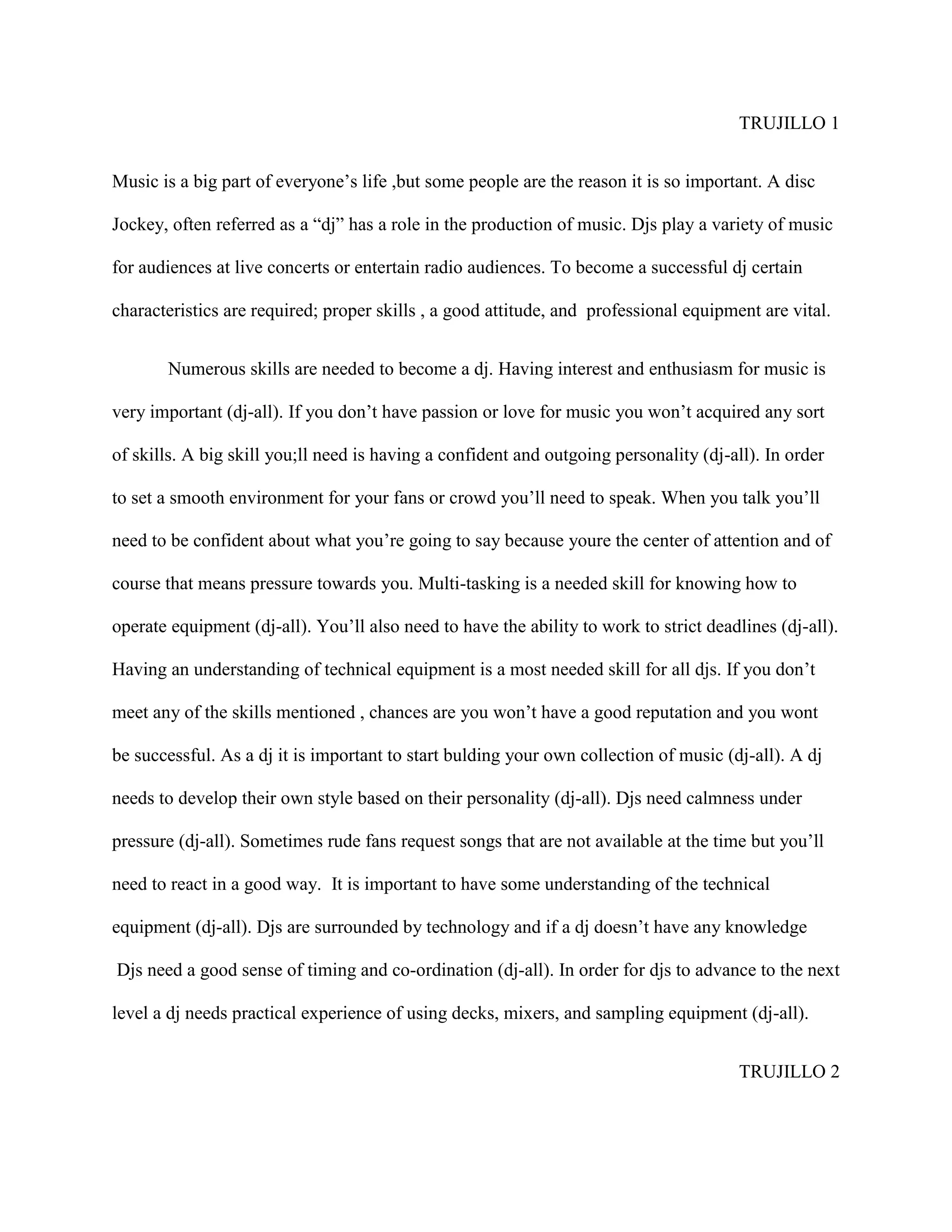 To be a successful DJ requires developing certain skills, maintaining a proper attitude, and using professional equipment. Key skills include having a passion for music, strong communication abilities, multi-tasking, working well under pressure, understanding equipment, and mastering various mixing techniques. It is also important for DJs to have an open and learning-focused attitude, as well as be responsive to audience feedback. Finally, basic DJ equipment like turntables, a mixer, headphones and microphones allow DJs to perform, but investing in higher quality professional gear can take their skills to the next level.