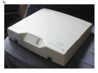 The document discusses ISDN (Integrated Services Digital Network) and various components and interfaces of an ISDN network. It describes the basic rate and primary rate interfaces, reference points, function groups, terminal equipment, and status lights on the network termination equipment.