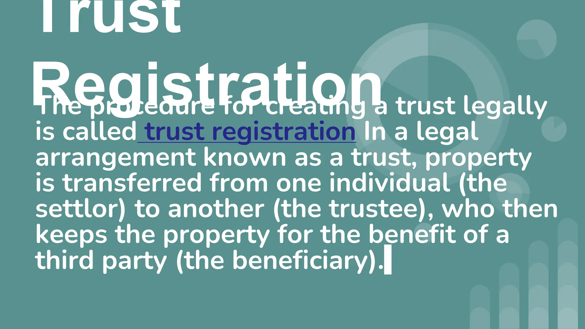 Trust registration is the legal procedure for establishing a trust, involving the transfer of property from a settlor to a trustee for the benefit of a beneficiary. It offers legal certainty, transparency, and accountability, allowing public access to trust deeds and annual reports from trustees. Additionally, it can provide tax benefits to the settlor, trustee, and beneficiary.