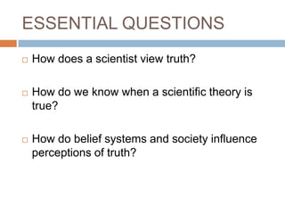 1. Thomas Kuhn's theory describes how science progresses through periods of "normal science" guided by accepted paradigms, and revolutionary shifts triggered by anomalies that cannot be explained by existing paradigms.