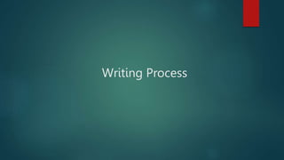 The document outlines the technical report writing process, which includes pre-writing, organizing ideas, drafting, revising, editing, and making a final draft. Pre-writing involves generating ideas through activities like talking, free writing, brainstorming, journaling, reading, and internet searching. Organizing sorts the ideas into a logical outline. Drafting composes the first version, and revising improves clarity and organization. Editing identifies mechanical errors. The final draft is presented to the intended audience.