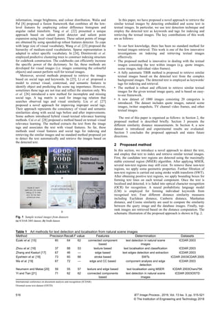 This document proposes a novel approach for detecting text in images and using the detected text as keywords to retrieve similar textual images from a database. The approach uses a text detection technique to find text regions in images, eliminates false positives, recognizes the text using OCR, and forms keywords using a neural language model. The detected keywords are then used to index and retrieve similar textual images from two benchmark datasets. Experimental results show the approach effectively retrieves similar textual images by exploiting the dominant text information in the images.
