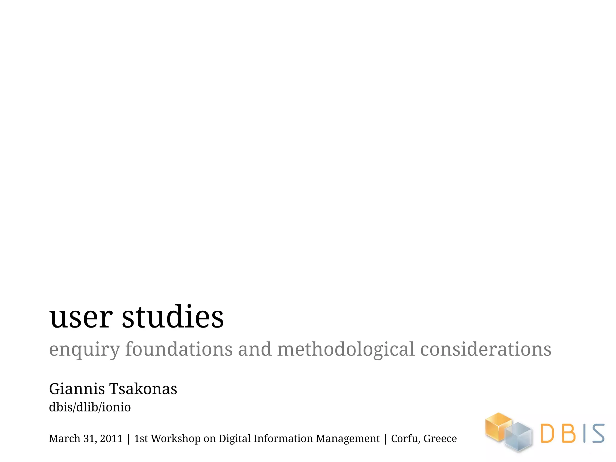 User studies aim to understand how users interact with and utilize information sources. There are two main types of user studies: usage studies which examine what, why, and how much is used, and behavior studies which examine how and why something is used. Methodologically, user studies employ various qualitative and quantitative methods like interviews, surveys, observations, and log/keystroke analysis to understand user behaviors and inform systems design.