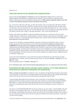 2) The document explains the concepts behind this formula, including that it relies on average speed over a period of time.