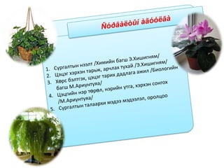 Тасалгааны цэцгийн увидас илтгэл