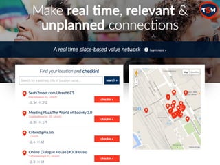 This document discusses the rise of a new "Society 3.0" driven by digital technologies and connected people. Key points discussed include: - Society is changing from industrial to a new digital form as people choose their own paths - Cities and connected people will become more important than countries and organizations - The rise of self-employed "Knowmads" and crowd companies is a trend in this new society - A "Serendipity Machine" is proposed as a real-time place-based network to enhance connections between knowmads within a city's virtual community