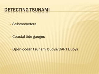 The term 'tsunami' comes from Japanese, meaning 'harbor wave,' and refers to waves caused by geological events such as earthquakes and volcanic eruptions. A tsunami warning system is essential for detecting tsunamis and ensuring timely evacuations, comprising sensor networks and communication infrastructure. The DART system has improved tsunami measurement capabilities since its inception in 1996, providing real-time data to warning centers.