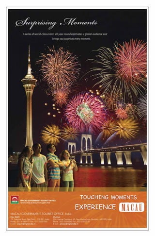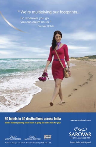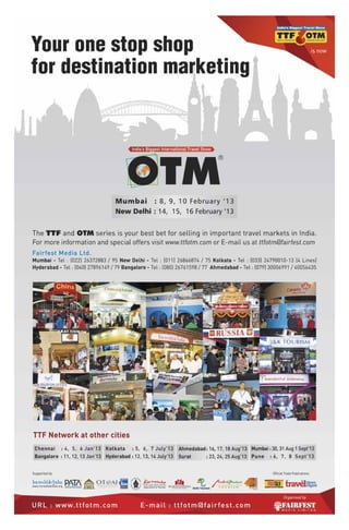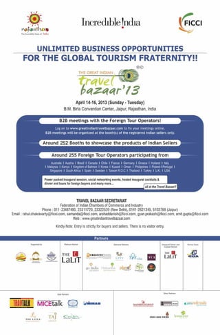 The document summarizes India's new multi-pronged approach to promoting tourism, which includes developing world-class infrastructure, training manpower, and undertaking aggressive promotional activities. It discusses India winning several World Travel Awards for its tourism offerings and notes that tourism is now recognized as an important driver of economic growth. The article also mentions plans to introduce seaplanes in certain parts of India to boost tourism.