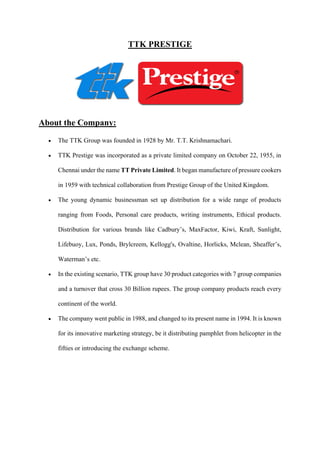 TTK Prestige, founded in 1928, has expanded to 30 product categories and achieved a turnover exceeding ₹30 billion, with its products available globally. In the 2018-19 fiscal year, operating income increased 13% year-on-year, but net profit declined by 27%, attributed to rising costs and declining profit margins. Key financial ratios indicate a drop in profitability, with the company's stock price rising by approximately 22.7% over the past year.