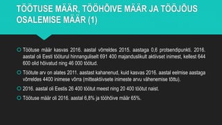 2016. aastal võrreldes eelmise aastaga ühe protsendipunkti. Tööjõus osalemise määr oli