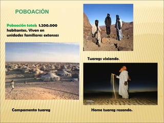 Home tuareg rezando.Campamento tuareg Tuaregs vixiando . POBOACIÓN Poboación total : 1.200.000 habitantes. Viven en unidades familiares extensas