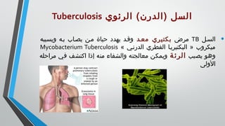 الدرن هو مرض بكتيري يسببه ميكروب المتفطرة السلية، ويشكل تهديداً على الحياة ويؤدي إلى وفاة حوالي 1.5 مليون شخص سنوياً على مستوى العالم. يُعتبر الرئة هو أكثر الأعضاء تأثراً بالمرض، وتتراوح فترة حضانة العدوى بين 2 - 10 أسابيع، مع أعراض تشمل السعال الشديد وفقدان الوزن. تعتمد الوقاية والعلاج على برامج التوعية والتشخيص المبكر والعزل، بالإضافة إلى استخدام التطعيمات مثل BCG.