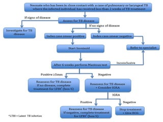 Tuberculosis (TB) is a highly contagious infection caused by Mycobacterium tuberculosis, leading to significant mortality worldwide, especially among HIV-positive individuals. Multi-drug resistant TB (MDR-TB) poses a complex treatment challenge, requiring close collaboration among healthcare professionals for effective management. Diagnosis and treatment involve various approaches including skin tests, drug regimens, and adherence to therapy, with a focus on preventing transmission and managing co-infections.