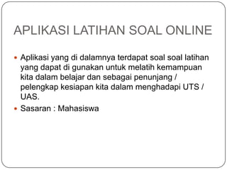 This document discusses an online practice question application. It contains the following information:
