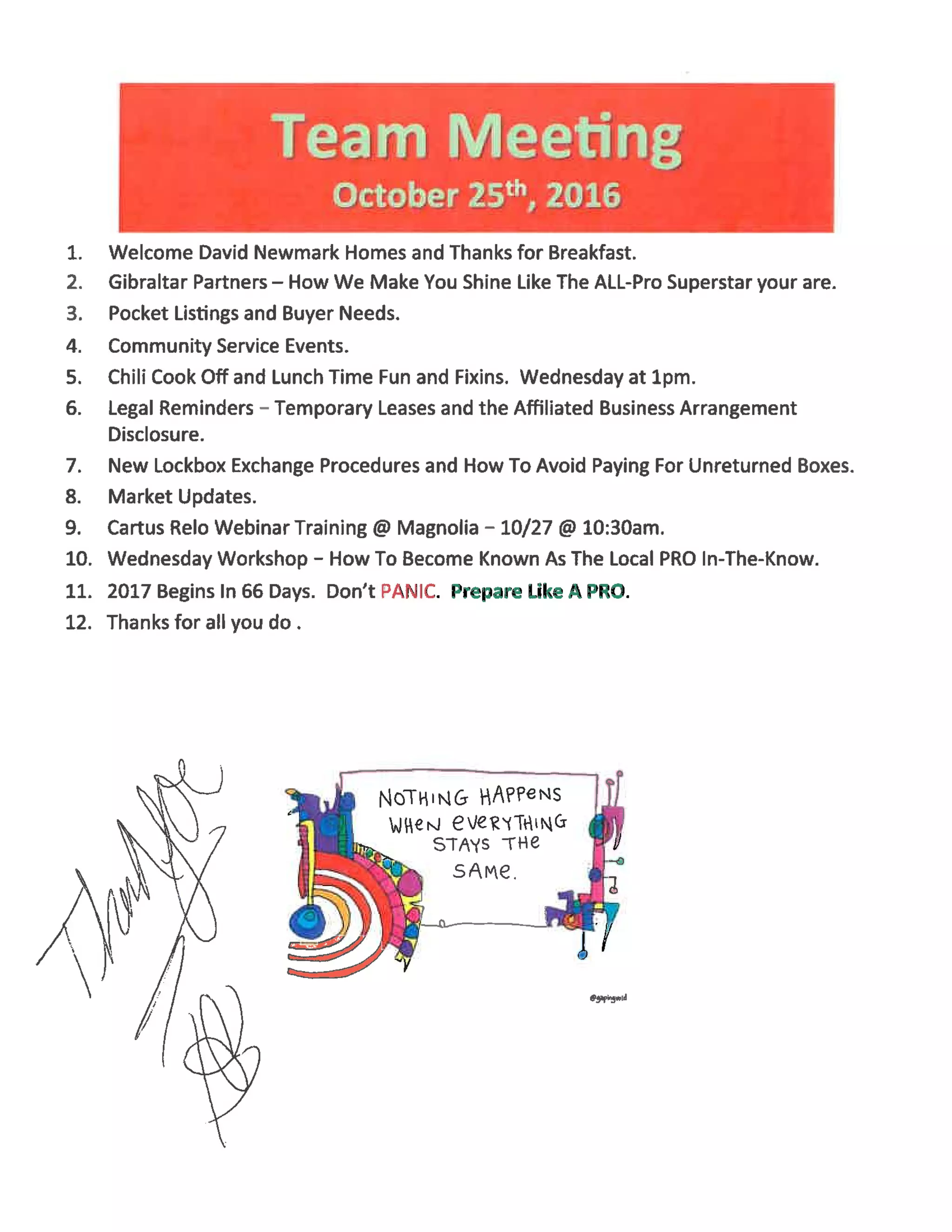 BHGRE Gary Greene - Tuesday Team Meeting Notes - October 25th, 2016