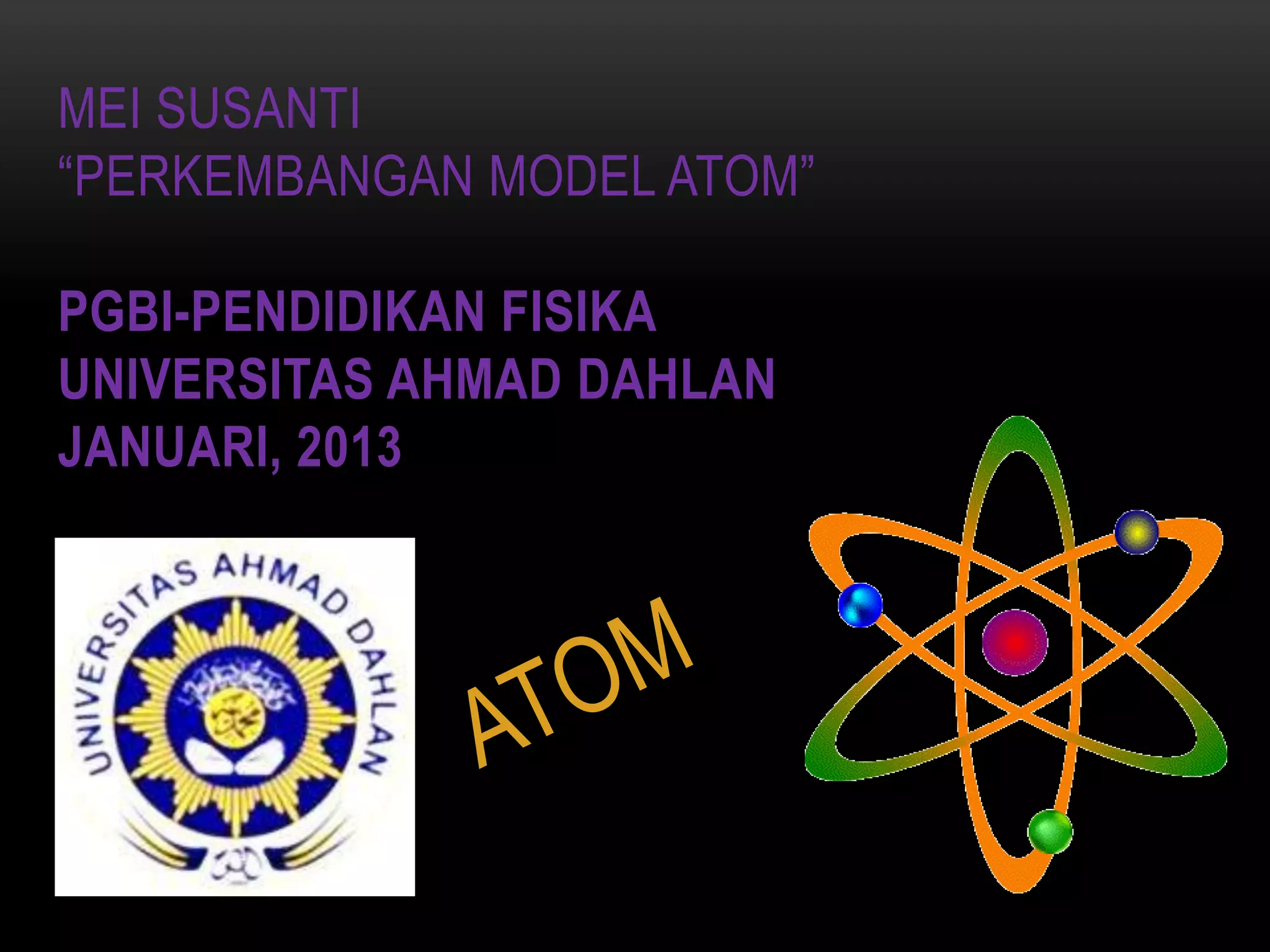 Dokumen ini menguraikan perkembangan berbagai model atom, dimulai dari ide Dalton tentang atom sebagai partikel tak terbagi, diikuti oleh model Thompson, Rutherford, dan Bohr. Selanjutnya, dijelaskan perkembangan model atom modern berdasarkan mekanika kuantum, termasuk teori dualisme gelombang-partikel dan prinsip ketidakpastian. Setiap model membawa pemahaman baru tentang struktur dan perilaku atom.