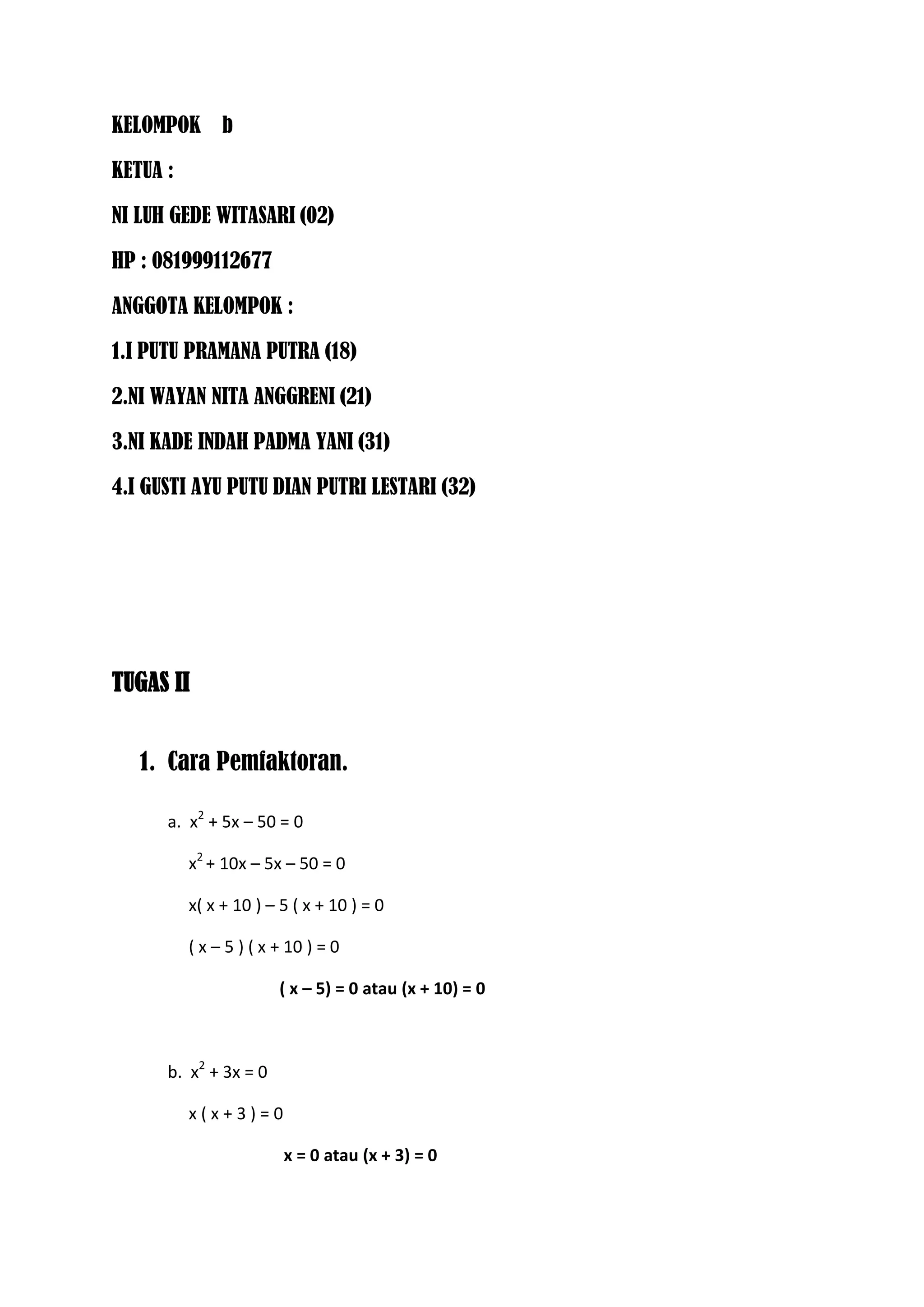 This document contains information about a group assignment in Indonesian, including:
