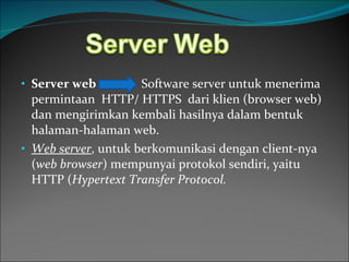 Apache dan IIS adalah dua jenis server web yang paling populer. Apache merupakan server web open source yang dapat berjalan di berbagai sistem operasi, sedangkan IIS khusus berjalan pada sistem operasi Windows. Kedua server web ini memiliki fitur keamanan dan kinerja yang baik untuk mendukung situs web dinamis.