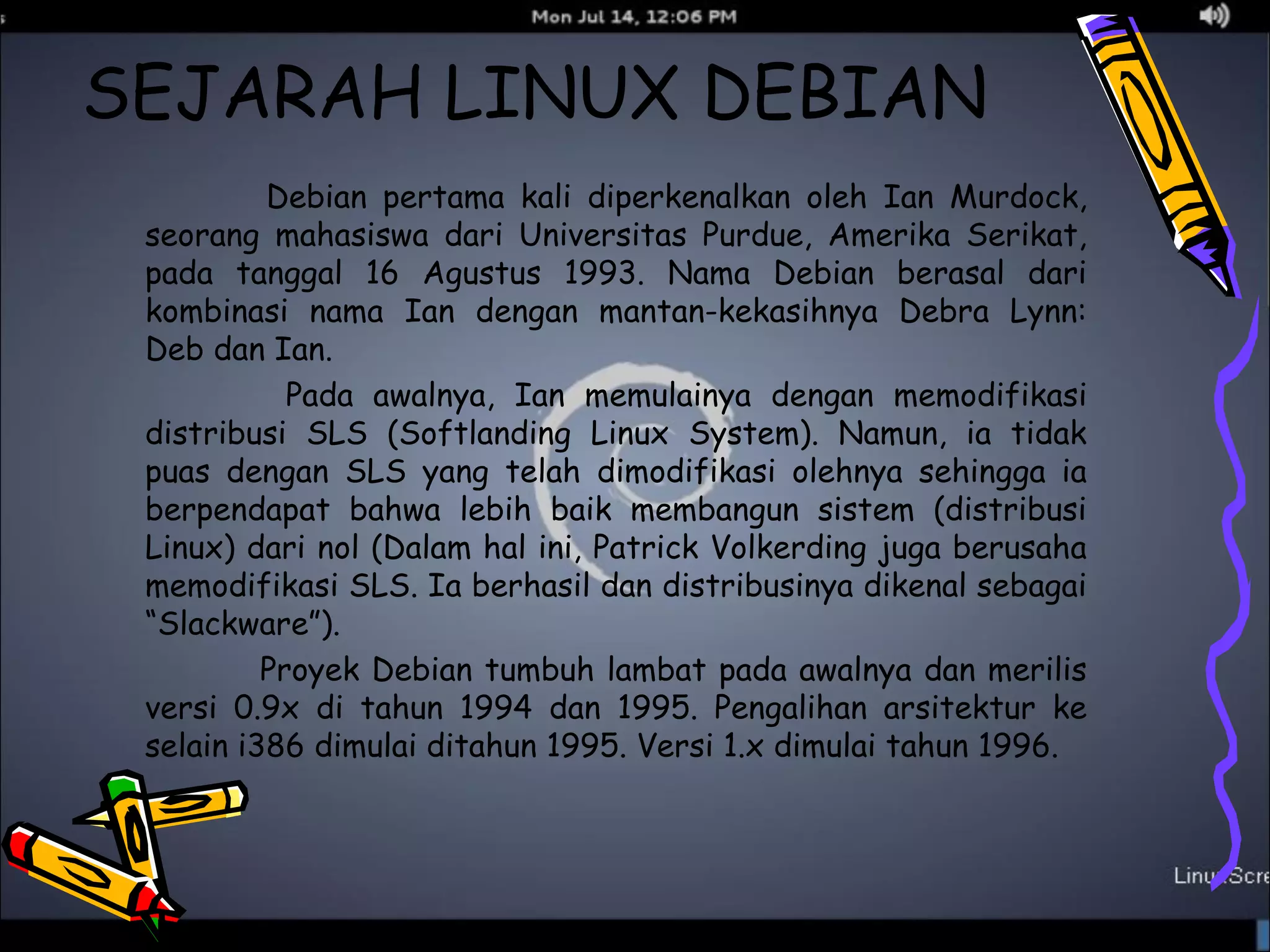 Dokumen tersebut merangkum sejarah perkembangan sistem operasi Linux Debian, mulai dari awal diperkenalkan oleh Ian Murdock pada tahun 1993 hingga rilis terbaru pada tahun 2009. Dokumen tersebut juga memberikan instruksi cara menginstal Linux Debian di komputer.