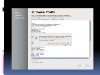 Fedora adalah distro Linux berbasis RPM dan YUM yang dikembangkan oleh Fedora Project dan didukung oleh Red Hat, dimulai pada tahun 2003 setelah penghentian Red Hat Linux. Distro ini dikenal sebagai pelopor teknologi terkini dan berfungsi sebagai ajang percobaan untuk pengembangan Red Hat Enterprise Linux (RHEL). Proses instalasi Fedora meliputi beberapa langkah, dari mendownload ISO hingga mengkonfigurasi pengguna baru dan sistem.