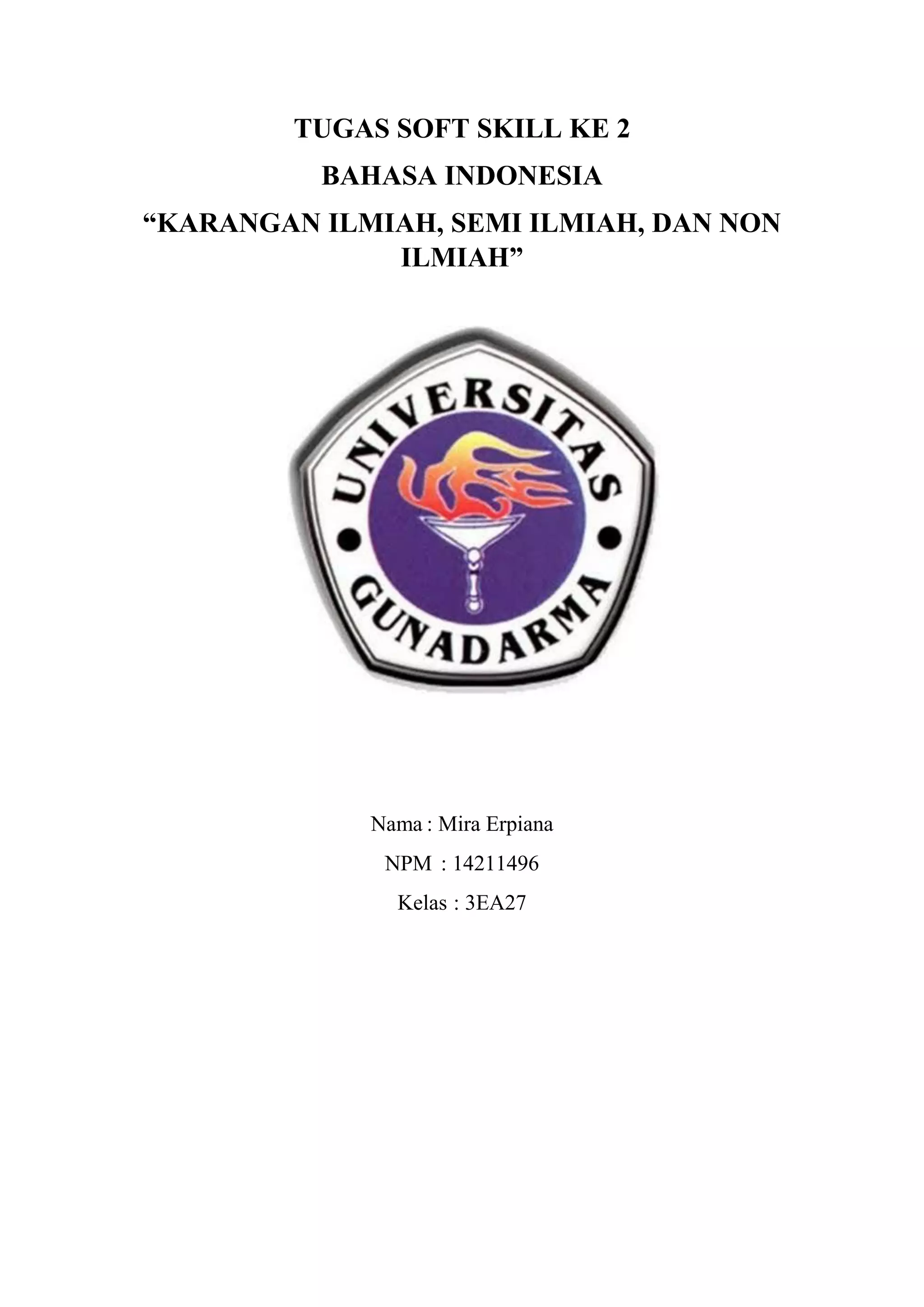 Teks tersebut membahas tiga jenis karangan yaitu karangan ilmiah, semi ilmiah, dan non ilmiah. Karangan ilmiah didasarkan pada hasil penelitian dengan metode ilmiah, sedangkan karangan non ilmiah bersifat subjektif tanpa dukungan fakta. Karangan semi ilmiah merupakan campuran antara fakta dan fiksi dengan bahasa yang lebih mudah dipahami.