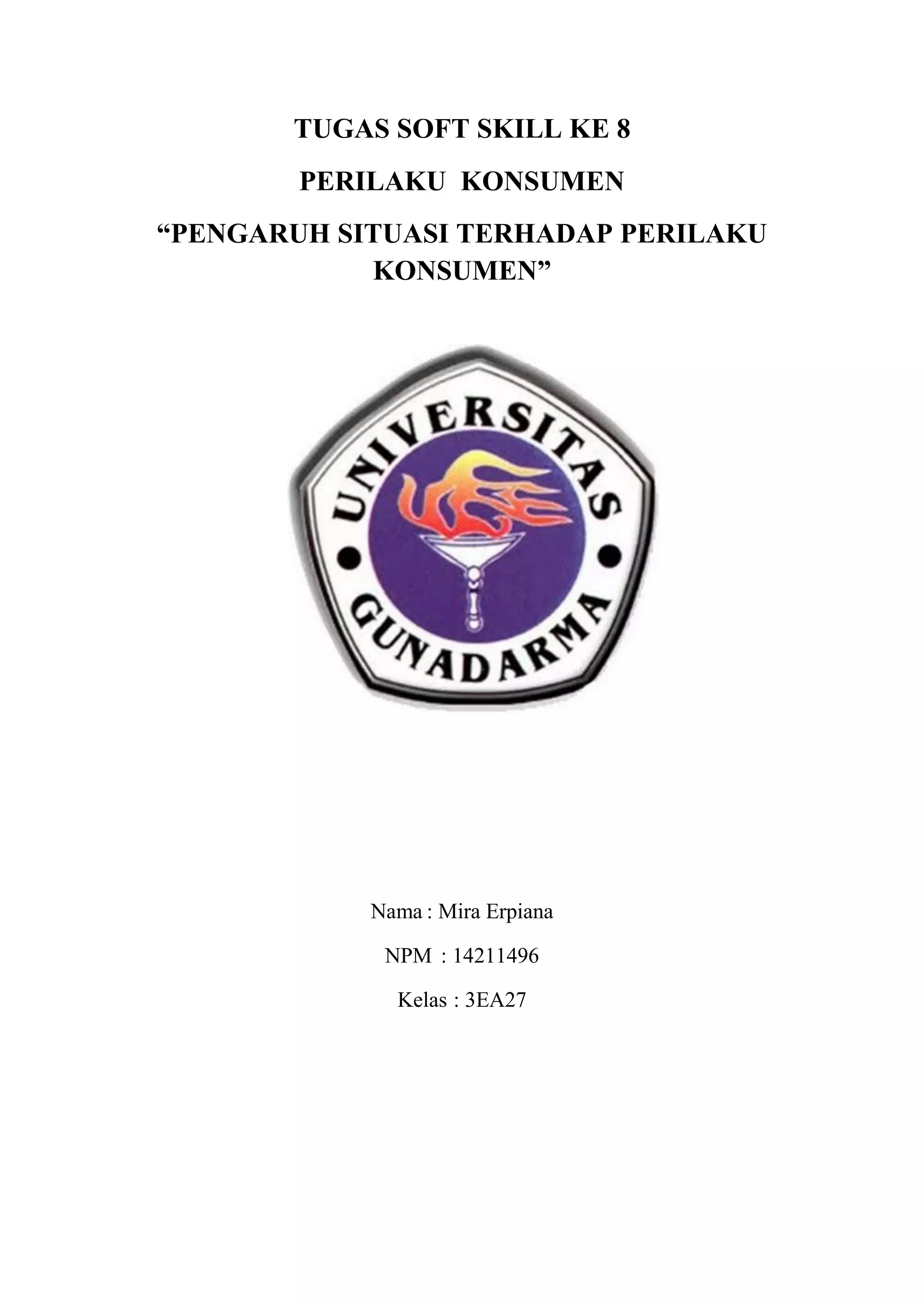 Dokumen tersebut membahas pengaruh situasi terhadap perilaku konsumen. Secara khusus dijelaskan lima karakteristik pengaruh situasi menurut Belk yaitu lingkungan fisik, sosial, waktu, tugas, dan kondisi sebelumnya. Jenis situasi konsumen terdiri dari konsumsi, pembelian, dan komunikasi. Interaksi individu dan situasi dipengaruhi oleh berbagai faktor.