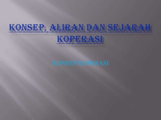 Koperasi didefinisikan sebagai organisasi bersama yang didirikan secara sukarela oleh orang-orang dengan tujuan untuk meningkatkan kesejahteraan anggotanya melalui kerja sama ekonomi berdasarkan prinsip-prinsip demokrasi, keadilan, dan kekeluargaan. Dokumen tersebut menjelaskan sejarah, definisi, prinsip-prinsip dasar, dan tujuan pendirian koperasi.