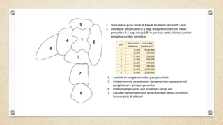 Dokumen ini membahas asas-asas sains data dalam pengangkutan, termasuk analisis visual penjanaan perjalanan. Terdapat data mengenai luas lantai pejabat dan kadar pengeluaran serta penarikan untuk beberapa zon. Rata-rata pengeluaran dan penarikan adalah 351,720.