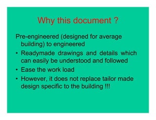1. Limitations on building size, number of bays, and span lengths for pre-engineered designs.