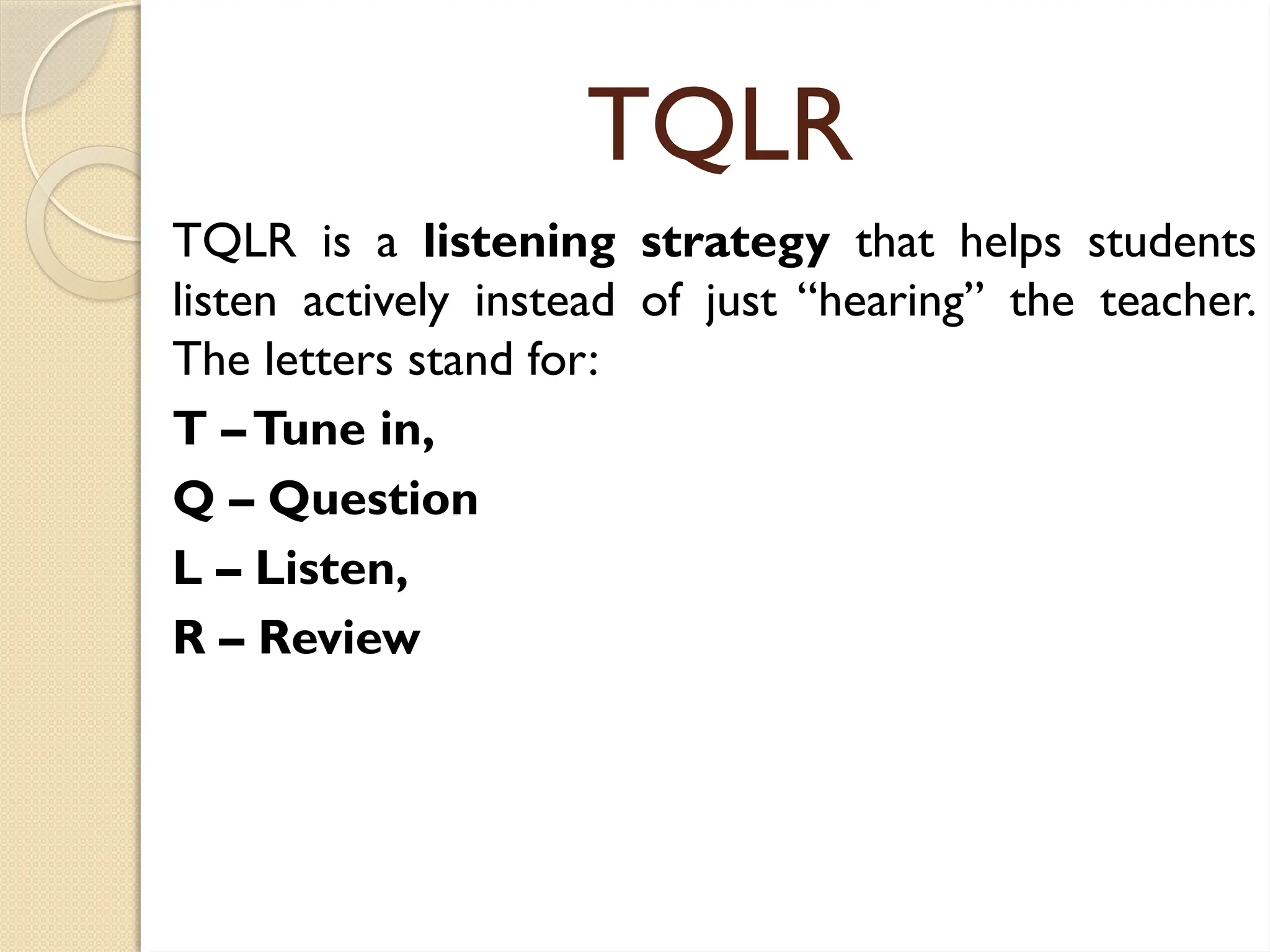 ◦ Tells students how to listen (e.g.,“no full sentences, just