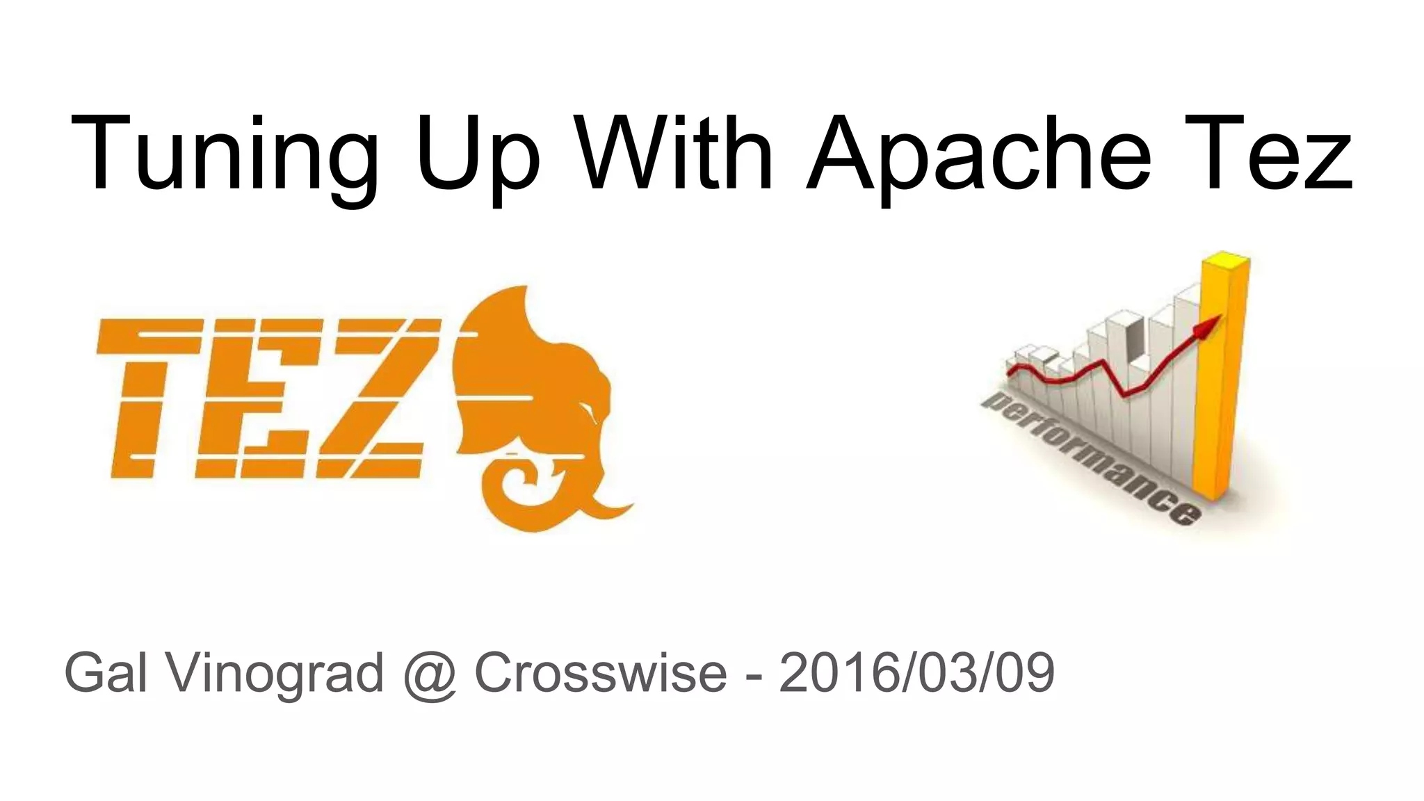 This document discusses tuning a pipeline with Apache Tez. It provides an overview of Tez, including that it aims to enhance scenarios not well served by MapReduce by supporting Hive and Pig. It details lessons learned from using Tez, such as some Pig tasks not compiling and occasional freezing, lack of DistributedCache support for S3, and poor Amazon support. The document concludes by stating that Tez is good for early adopters of Pig and Hive and those with bounded workloads.
