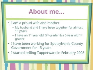 • I started selling Tupperware in February 2008