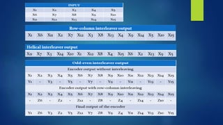 This document discusses turbo and turbo-like codes. It begins with an introduction to turbo codes, describing them as a class of high-performance error correction codes that were the first practical codes to closely approach channel capacity. It then covers channel coding, Shannon's theory, existing coding schemes like block codes and convolutional codes, and the need for better codes. The document spends significant time explaining turbo codes in detail, including their structure using parallel concatenated convolutional codes, interleaving, and iterative decoding. It also discusses related coding schemes like turbo product codes and low-density parity check codes. Finally, it reviews the performance, practical issues, applications in standards, and future trends of turbo and turbo-like codes.