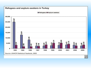 Turkey is a significant player in both sending and receiving migrants, with a history of labor migration to Europe beginning in the 1960s and facing new challenges with asylum seekers and irregular migration from various regions. As Turkey engages with the EU on migration policy, it has undertaken reforms to align with European standards, including adjusting its asylum laws and managing irregular migration flows. The relationship between Turkey and the EU is shaped by concerns over labor migration, border control, and Turkey's role in addressing refugee crises.
