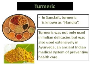 Turmeric is a plant with a root, plant, flower, and leaves. According to traditional Ayurvedic medicine, turmeric acts as a natural antibiotic while also strengthening digestion and improving intestinal health. It purifies and warms the blood while stimulating new blood tissue formation.