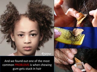 This document discusses using chewing gum to remove pet hair from floors. It notes that while vacuuming and brooming try to remove pet hair, it always seems to reappear. However, the document finds that by sticking chewing gum to the end of a Q-tip or pen and applying it to corners and problem areas, it can effectively capture hair stuck in the gum, leaving the floor nice and clean. Though the results may not be aesthetically pleasing, the method works to remove stubborn pet hair that lingers even after typical cleaning.
