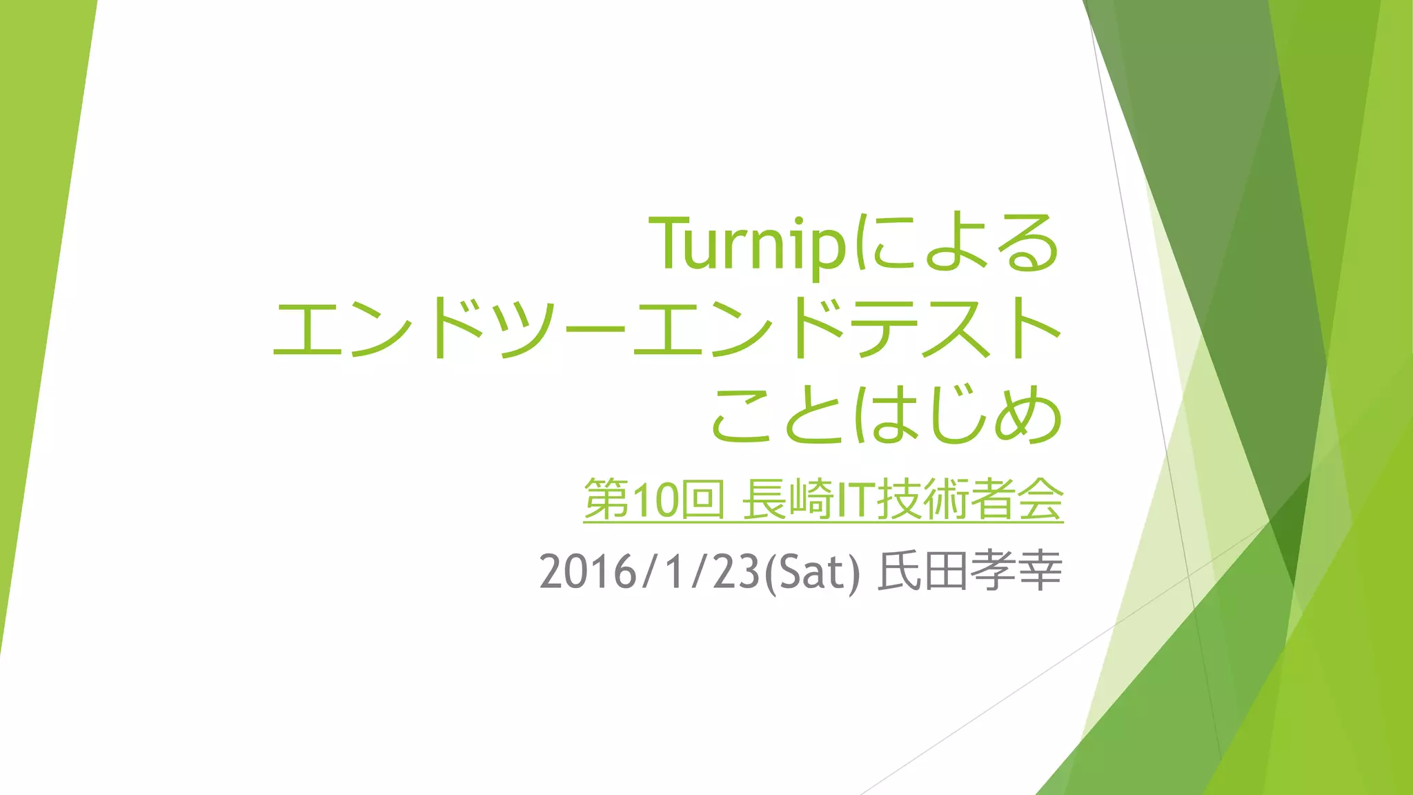 Turnipによる エンドツーエンドテスト ことはじめ 第10回 長崎IT技術者会 2016/1/23(Sat) 氏田孝幸