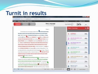 This document provides guidance on avoiding plagiarism when writing papers. It addresses several issues Turnitin may flag, such as using short common phrases, copying and pasting text without citation, poor paraphrasing, and reusing old papers. The recommendations include writing in your own words, only quoting text that would change meaning if paraphrased, and citing all sources using the proper citation style. Writers should take care to avoid direct copying from sources and instead present ideas and information in their own original writing.
