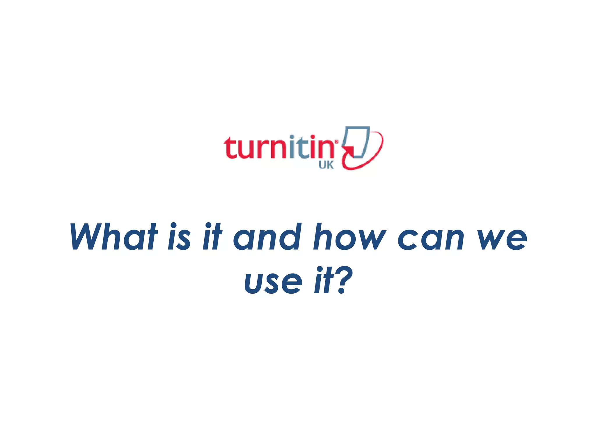 Turnitin is an online plagiarism detection tool that allows students to submit assignments electronically and receives originality reports. It can be used for formative feedback by setting up Turnitin assignments on the module page. Issues around online submission and context need to be considered when using Turnitin. The document provides instructions on how to create a Turnitin assignment, set options like due dates and originality reports, and how students will access submitted assignments and feedback.