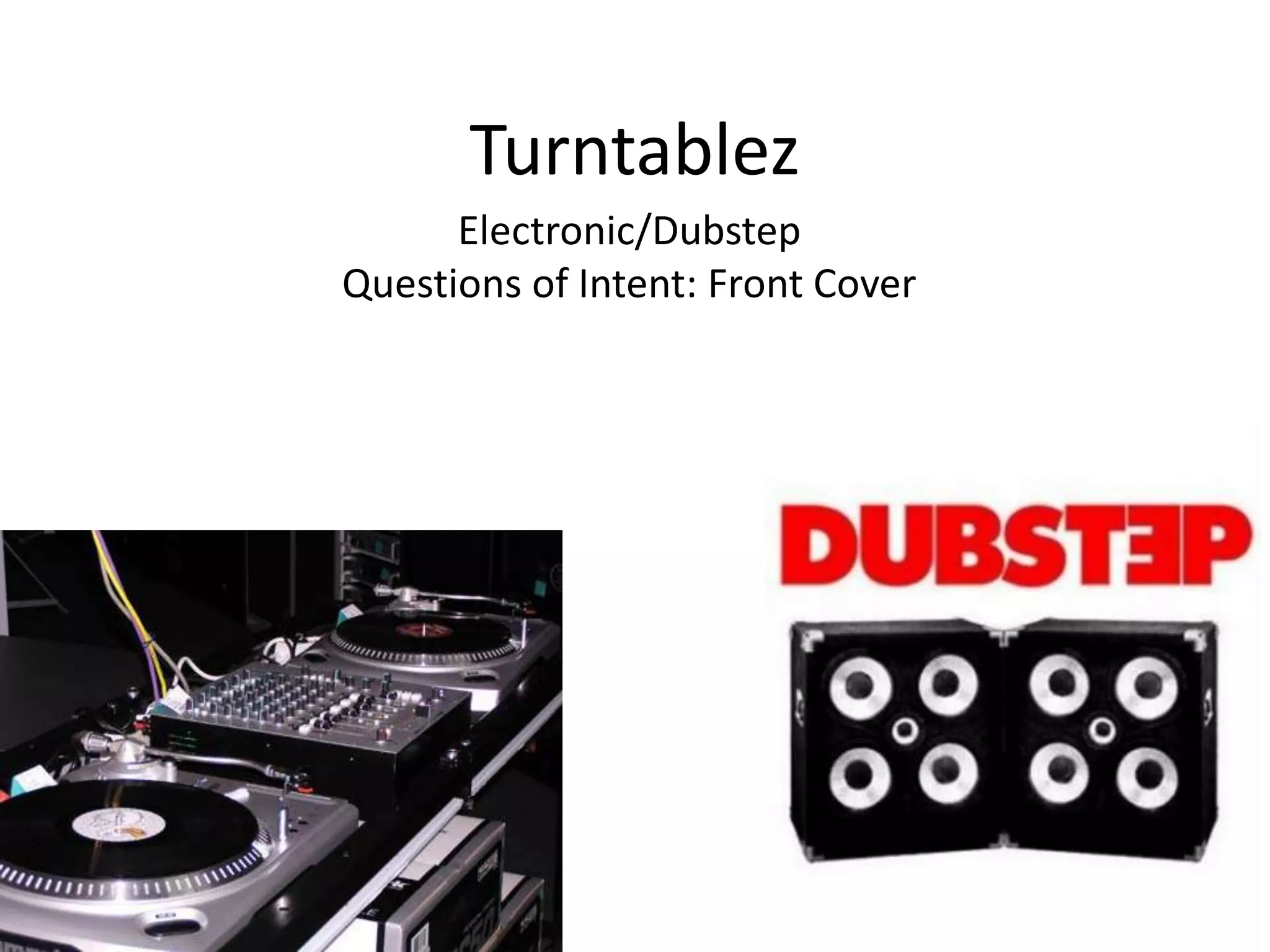 The document discusses the development of a front cover for a music magazine called "Turntablez" focused on dubstep music. Key details include: