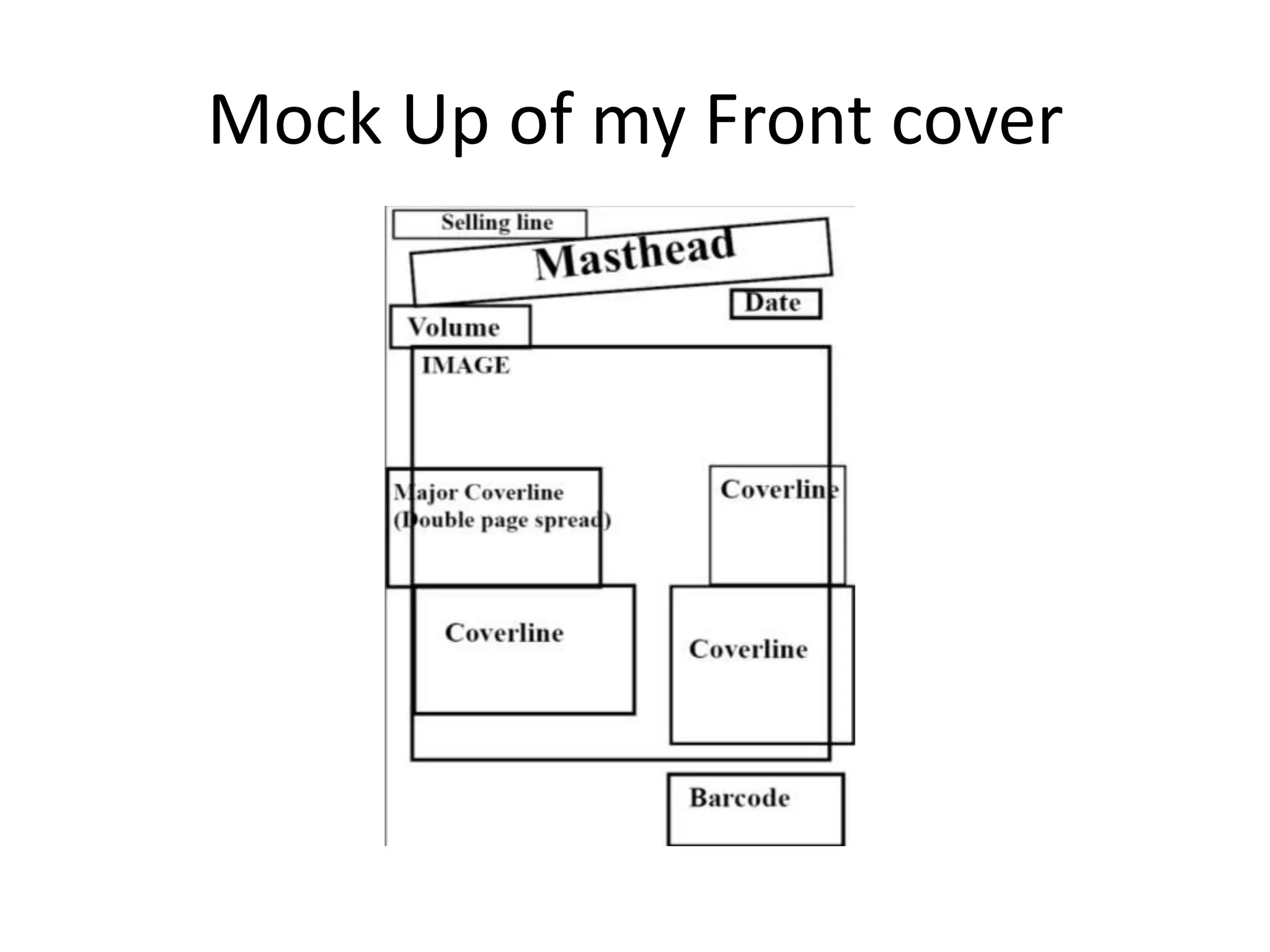 1) The masthead will be diagonal rather than horizontal to challenge convention. Coverlines and images will follow a structured layout.