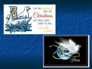 The document discusses the turtle dove, an endangered bird species. It provides details about turtle doves, including that they live in open woodland in Africa, Europe and Asia, feeding on the ground. Turtle doves are under threat due to scarce food sources from overharvested plants, as well as hunting. The document explores why turtle doves get their name and shares that they are a symbol of true love and peace.