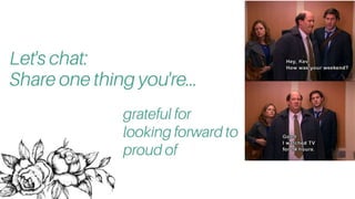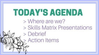 This document provides an overview of the upcoming weeks for a course. It outlines that in the current week students will have skills matrix presentations and receive feedback from peers, and their final skills matrix is due next week. It also previews that next week will include a lecture on resumes and cover letters, with the following week focusing on networking and leveraging LinkedIn. Students are reminded to attend optional office hours and asked if there are any questions.