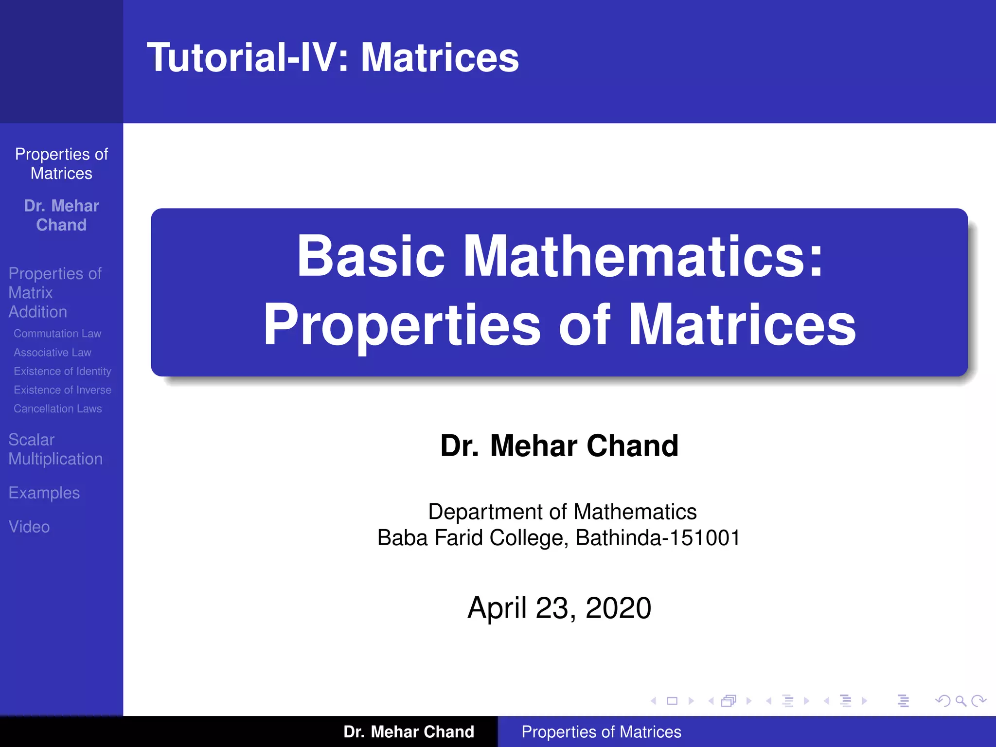 This document discusses the properties of matrices, including properties of matrix addition and scalar multiplication. For matrix addition, it describes the commutation law, associative law, existence of an additive identity and inverse, and cancellation laws. For scalar multiplication, it lists four properties. It also provides three examples calculating matrices and solving systems of equations involving matrices.